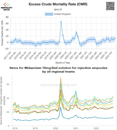 It seems that starting in April 2020, 10,000s of elderly were designated as “at the end of life” and euthanized with an opioid (Morphine) and benzodiazepine (Midazolam) combination.