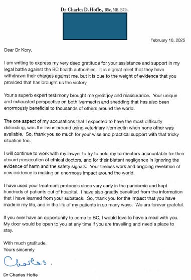 If I may say so, I was part of the "all-star" crew of Covid experts that submitted scientific defenses of all of Dr. Hoffe's statements and actions in Covid. The "authorities" just dismissed his case.