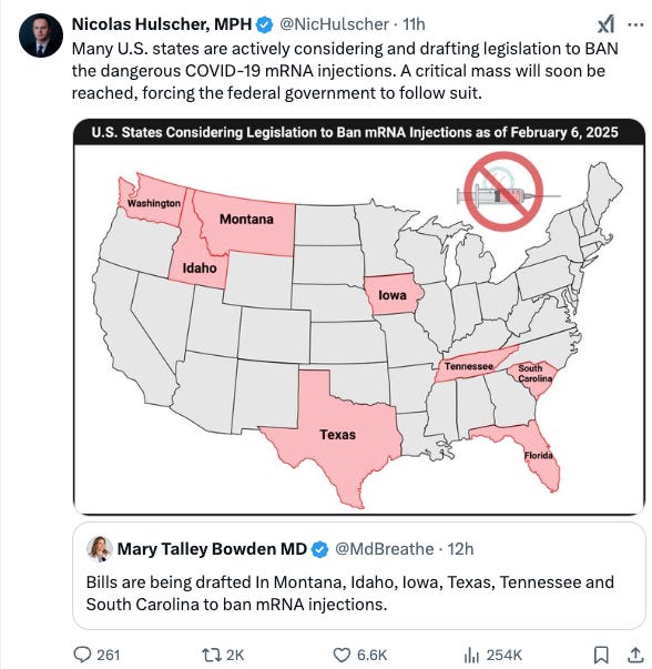 However, I so admire and appreciate the scientists I mentioned above as well as VSRF and the other health freedom organizations across the country who are still trying valiantly to sound the alarm of the mRNA platform’s dangers. And it really looks like they are finally succeeding, as Montana (among others already) recently debated legislation which would rightly outlaw mRNA vaccinations.