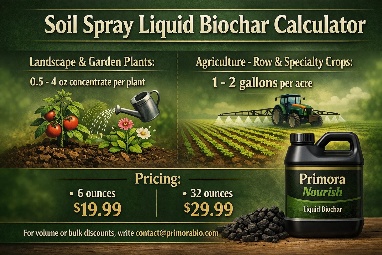3) Liquid Biochar (Primora Char or equivalent, e.g. American Biochar)