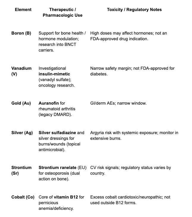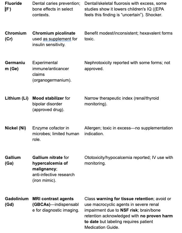 My overall impression from my research into this “lack of research” is that the funding follows risk management or profit potential, not nutrition. Most funding has gone to bio-monitoring and toxicity (mining/processing regions, occupational cohorts) and to drug trials, which typically yield narrow therapeutic indices and associated adverse events. Where are studies on the impacts of naturally occurring ultra-trace amounts on human physiology (and in a complex or combination)? They are not happening!