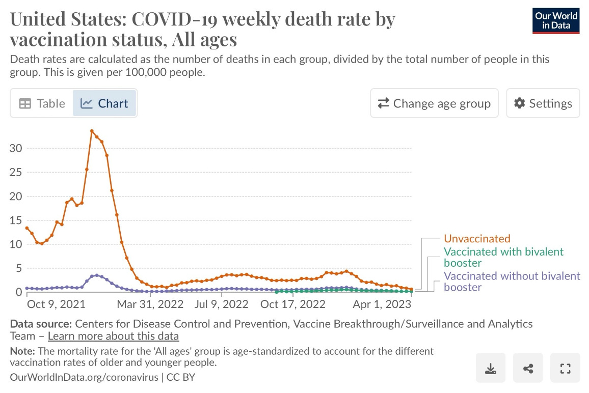 These data are consistent with the recent report published in the New York Times which stated “despite strong levels of vaccination among older people, COVID killed them at vastly higher rates during this winter’s Omicron wave than did last year, preying on long delays since their last shots and the variant’s ability to skirt immune defenses.” I must add that these higher rates of death in the elderly are also seen in the boosted.