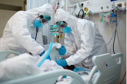 The act of of sedating and paralyzing someone to place an endotracheal tube through their vocal cords and into their trachea is called “intubation” and is required to transition someone to support by an invasive mechanical ventilator. What I witnessed in the first wave (but not later waves) was doctors favoring “early intubation/mechanical ventilation” out of fear that the patient would suddenly crash (intubating a “crashing” patient is a higher risk procedure). And yes, another subtle, but not overt motivation, very early on, was to “protect” staff from exhaled breath due to fear of heated high flow nasal cannulas (this is an intermediate support device often used to avoid intubation) - more on this issue/aspect in Part 3 which is already available here).