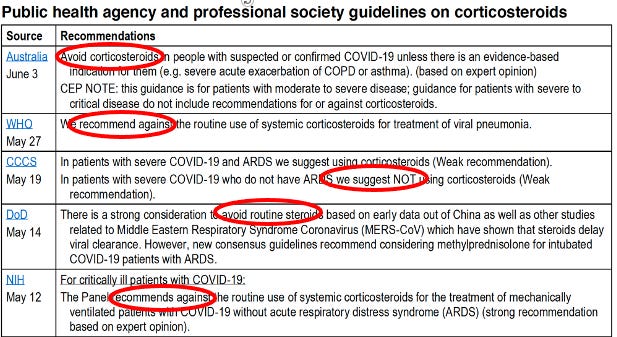 In that paper, I argued for widespread corticosteroid use at a time when all the national and international health care agencies were recommending against use.