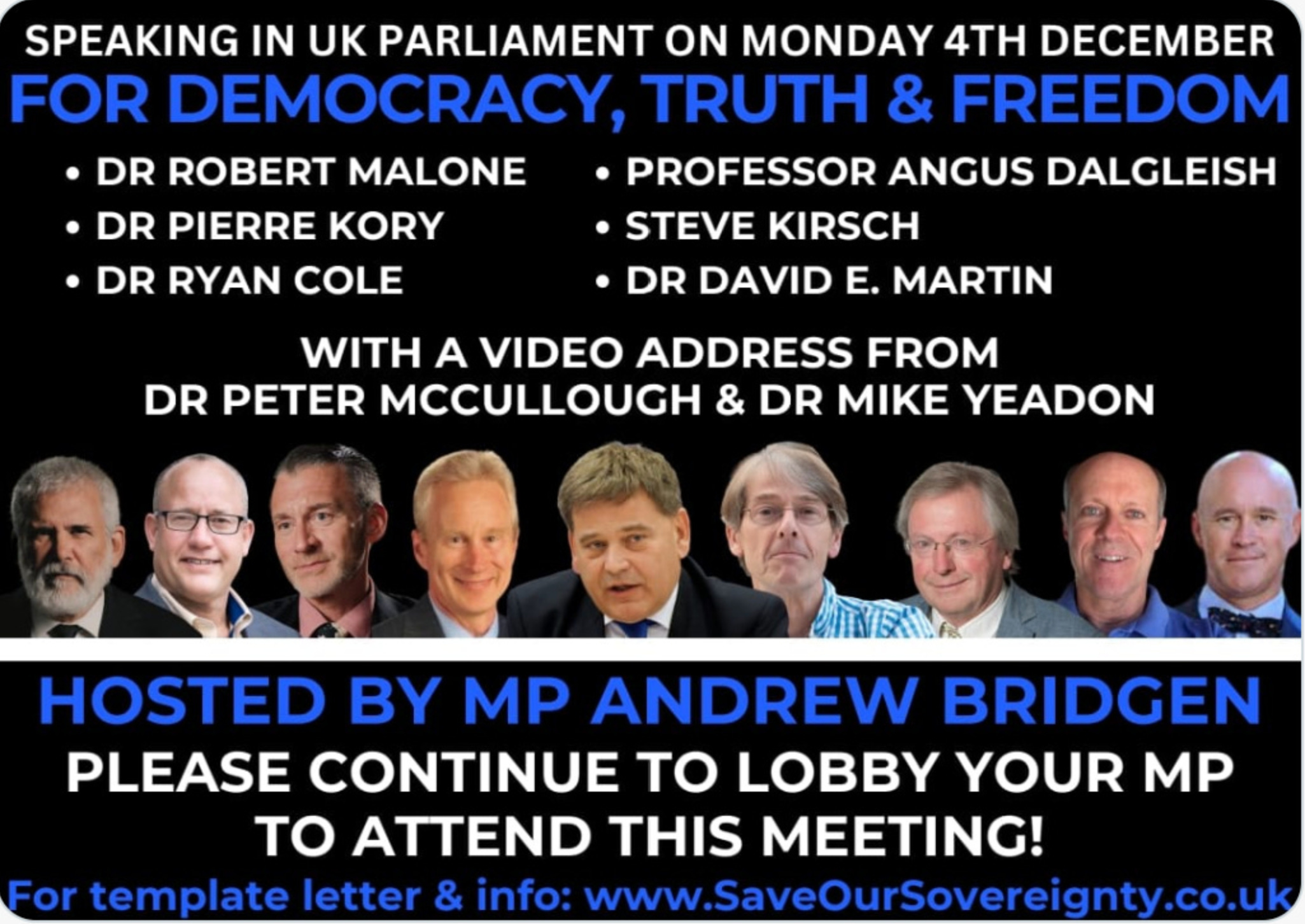 Although not an official Parliamentary hearing, we anticipate a strong turn-out to MP Andrew Bridgen's meeting called "Democracy, Truth, and Freedom." Short film of our planned testimony below.