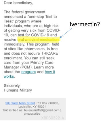 Lets just take a brief moment to see the somersaults the U.S government is doing to “promote” the use of molnupiravir and paxlovid. I just got this last week from a high ranking member of the military. When I read the below, I imagined the word “ivermectin” instead of “oral anti-viral medication”.. and it almost made me cry. Soo close. But not really.