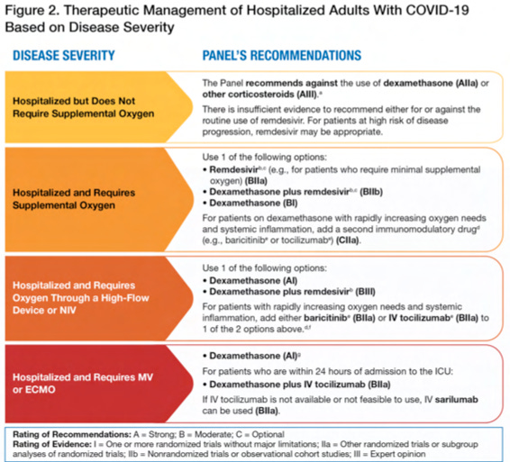 You want to know what is even worse about all this insanity? It’s that I truly believe the hand of Pharma influenced the design of Oxford’s RECOVERY trial. I am now convinced they purposely used a low dose of corticosteroid, knowing that the massive efficacy of higher doses would obviate the need for more expensive, on-patent anti-inflammatory therapeutics, i.e the “ibs and abs” that they pair the anemic dose of dexamethasone with (i.e. tocilizumab, baricitinib, and sarilumab). Too cynical? Me? Never. Like Bret Weinstein said to me a while back, “every time I think I am being too cynical, it invariably turns out I am being naive.” The United States National Institutes of Health COVID-19 treatment guidelines are below. Read ‘em and weep. But like, really weep. Weep like all the American families have over their lost loved ones, all fucking 800,000 of ‘em.