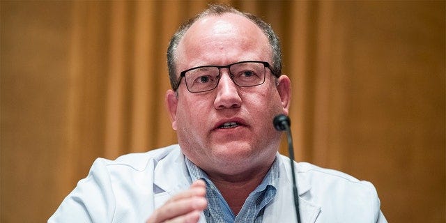 Dr. Pierre Kory, associate professor of medicine, testifies during a Senate Homeland Security and Governmental Affairs Committee hearing on Dec. 8, 2020. (Tom Williams/CQ-Roll Call, Inc via Getty Images)