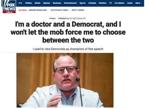 He's right—and the Democrat party’s newfound and aggressive affinity for censoring debate and strong-arming doctors is making many of us rethink our political allegiance.