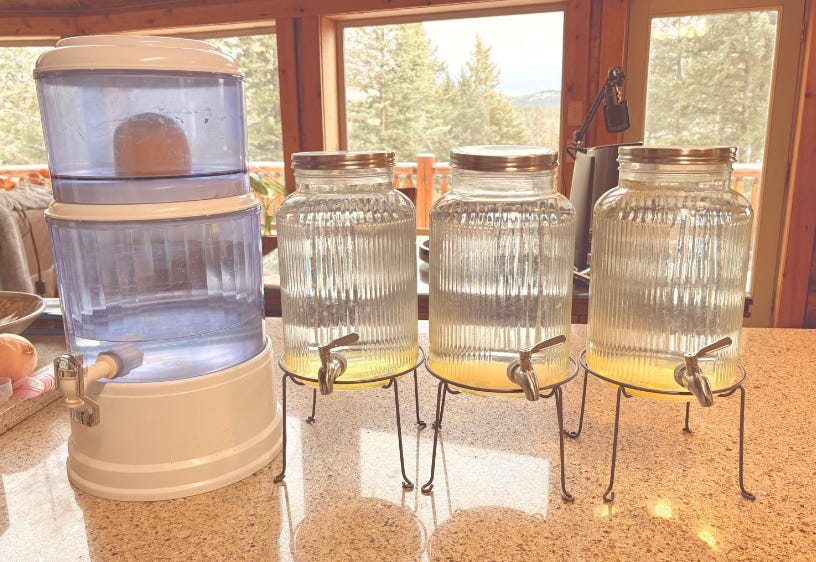 So, it should not come as a surprise that “I don’t leave home without it.” To wit, below is the Kory Family Traveling Water Treatment Plant. We came up to Montana so I could finish my book, and so we shipped our set-up here beforehand: