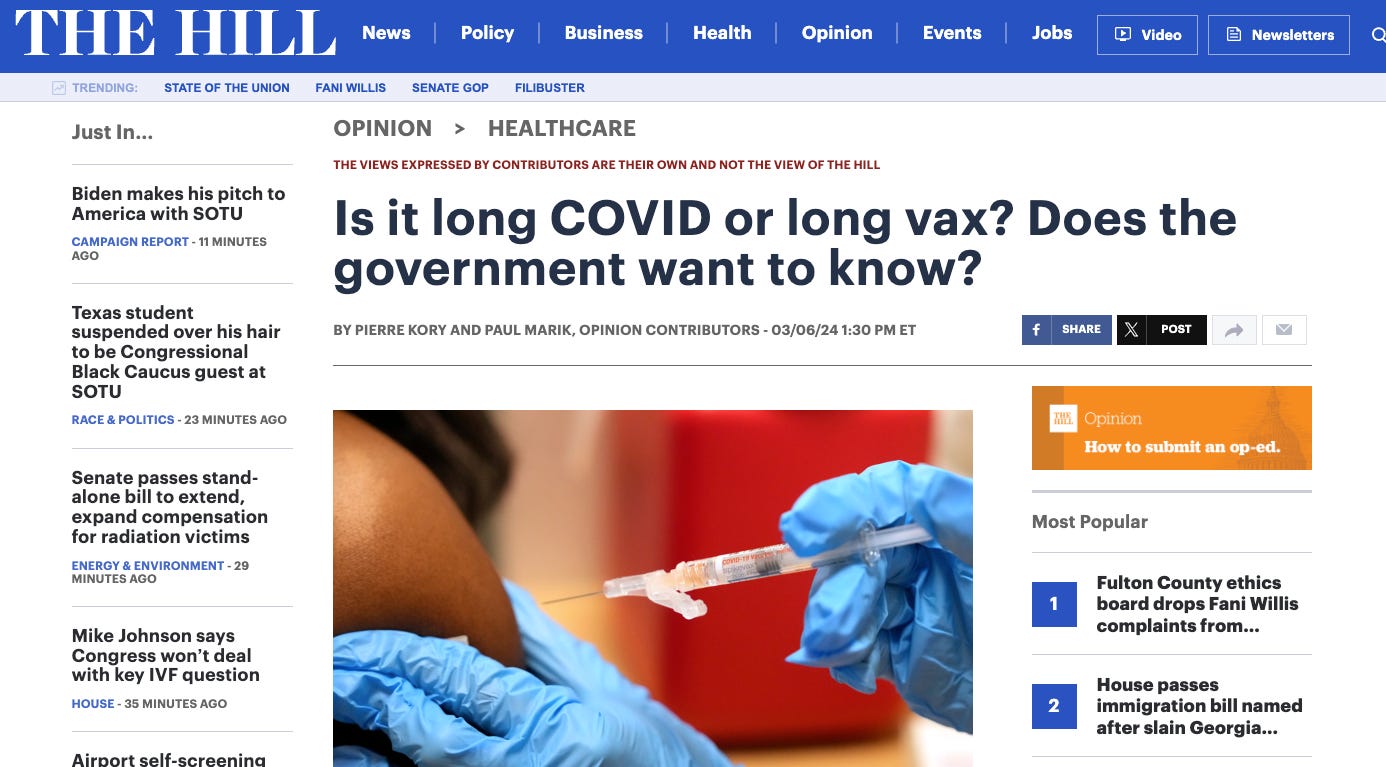I have been trying for 2 years to make the public aware that "Long Vax" is far more common than Long Covid. We finally landed an Op-Ed in a major center-left publication which exposes this reality.