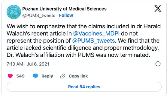 Even though this paper was successfully published later, Dr. Walach’s University immediately terminated him… in a tweet?