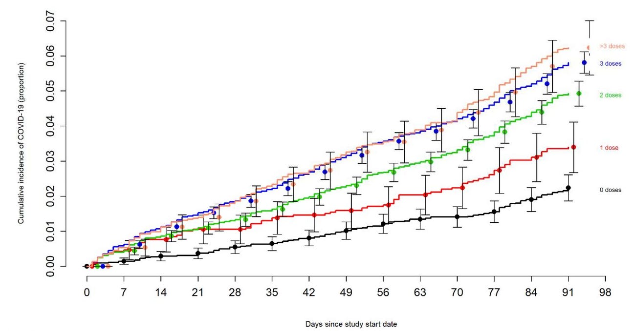 Another light at the end of the tunnel is the famous Cleveland Clinic paper which showed that the more Covid vaccines you received, the more often you got Covid. Recall this damning figure:
