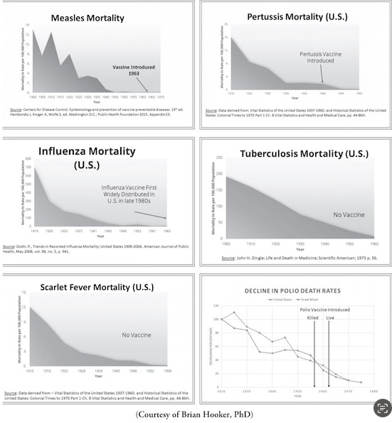 That book exposes decades of censoring of both the acute and chronic illnesses caused by the ever-expanding CDC schedule with its pragmatic but unscientific clumping of numerous vaccine administrations on a single day, an intervention that has never been tested for safety. That book also exposes the biggest myth about vaccines which is that deaths from the illnesses they protect against had been nearly eradicated through improvements in sanitation and hygiene (and antibiotics) before the vaccine for that particular disease was even developed! Note the corresponding decrease in TB and Scarlet fever mortality, two diseases for which there is no vaccine to date: