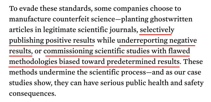 In the article “The Disinformation Playbook,” by the Union of Concerned Scientists they describe 5 tactics used by the pharmaceutical industry to “counter science inconvenient to industry interests.” The first tactic is called “the Fix” and is described as below: