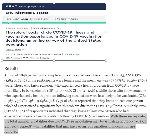 Despite all of the above, I think that the dam of censorship against adverse mRNA vaccine science may be breaking, and potentially breaking rapidly. I say this based on the below paper published last week in the British Medical Journal of Public Health. Note that BMJ is one of the top journals in the world: