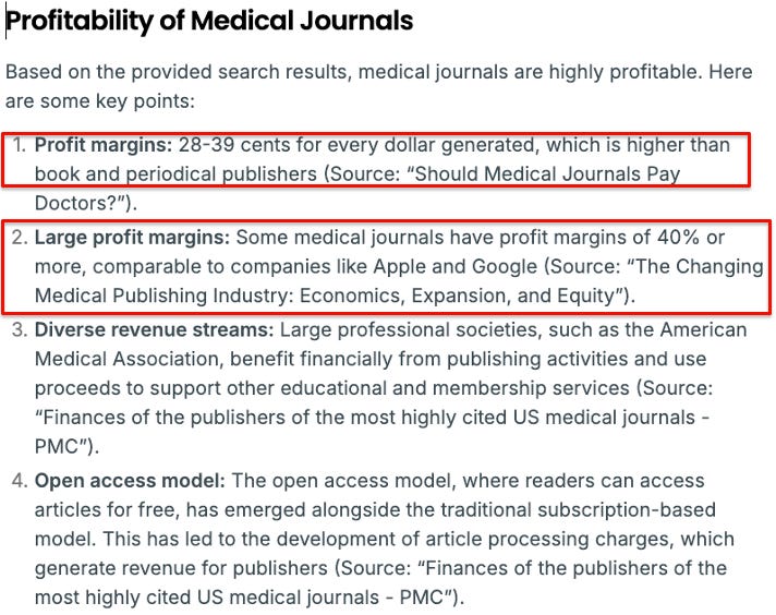 From my Brave Browser AI response to the question “How profitable are medical journals?”