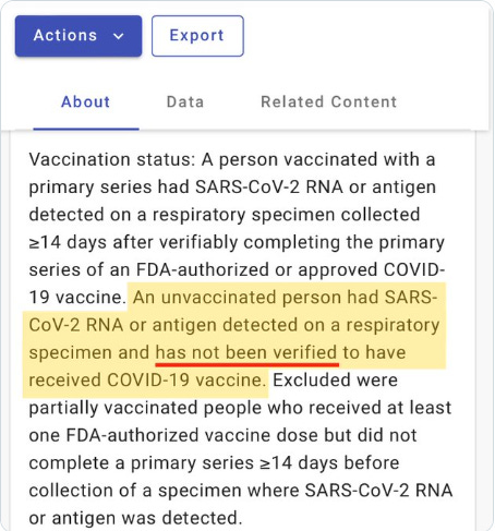 First issue with the chart above (which I will not go into in depth here as it is too complex and time-consuming of a data analysis for me), is that they were also constantly “moving the goalposts” of what it meant to be up-to-date for vaccination, i.e. first shot vs. first “series”, 1st series plus booster etc. Most importantly, you were not considered vaccinated until over 14 days had passed since your jab. Since so many vaccinated were oddly falling ill right within that 2 week post-vax time frame the chart above is already on shaky ground. So, although the arbitrary definitions of “vaccinated” certainly inflated the efficacy of the vaccines, it was not the main reason for the corruption of the U.S data.
