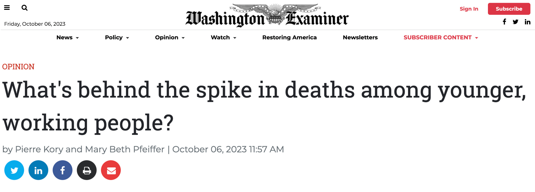 Published Another Op-Ed Trying To Call Attention To The Exploding Rates Of Death Amongst Young, Working-Age Americans