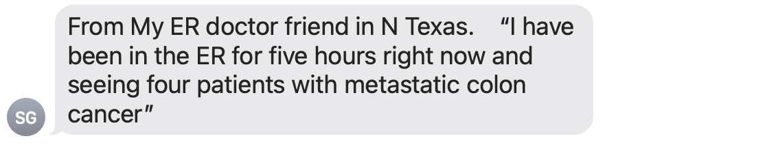 MSOTI again, relaying to me a text conversation with an ER doc friend of hers: