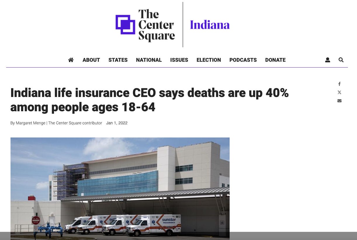 Is this a surprise? Even colleges (filled with young healthy Americans recovered from Covid) are still mandating the modified mRNA jabs (104 American universities still had mandates as of 6 weeks ago). This despite gov’t and industry data showing that the employed, working-age Americans of our country are suddenly dying at historically unprecedented rates coincident with the beginning of the vaccine mandates. At the risk of repeating myself, I again call attention to the now-famous article about the life insurance giant One America, where their CEO, Scott Davidson, said the following in late December of 2021:
