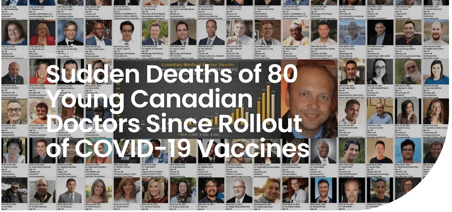 She was referring to the above 80 young, healthy Canadian doctors in their prime that died since the rollout of the vaccination campaign, many of them leaving behind stridently “pro-vax” social media statements. Unsettling to say the least.