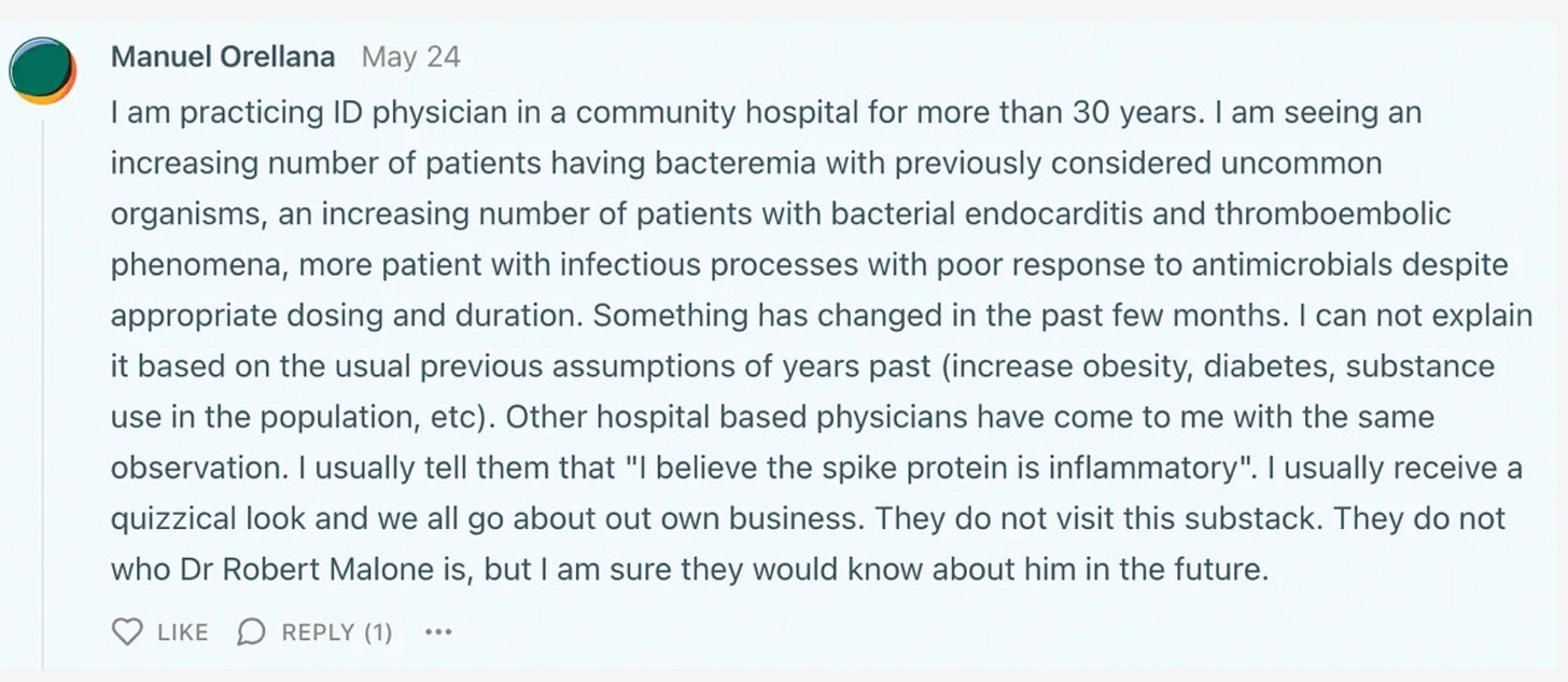That last line confirms what I have been hearing of late from my “Long Vax” patients (again, this “long Covid” diagnosis is wrong in the majority, most are decimated from the jab and not Covid). But the “Long Vaxxers” are being gaslit much less than before. I cannot overstate what a huge change that is from a year or two ago where any mention of being made ill by the vaccine led to arrogant dismissals and clown-talk from doctors such as “I don’t know what is wrong with you but what I do know is that it wasn’t caused by the vaccine.”