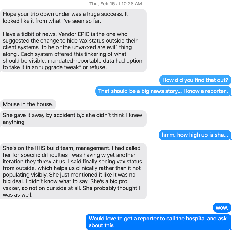 when a patient with Covid presented to the hospital, despite presenting their vax cards from CVS or Walgreen’s, the vaccine data was not entered in the official vaccination record part of the electronic chart.