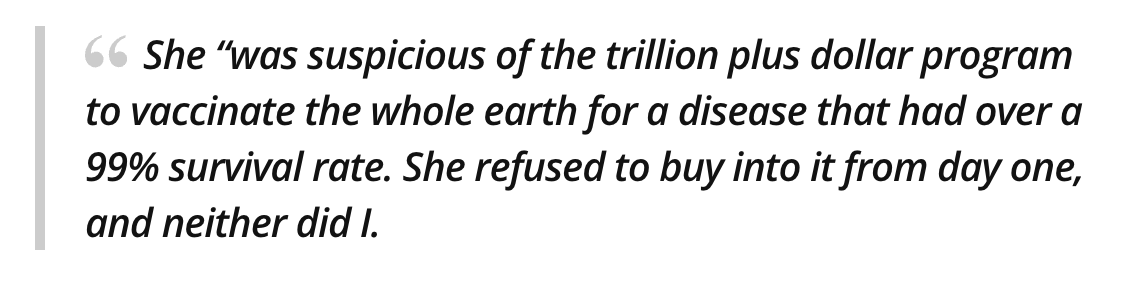 Further, I found this next comment from MSOTI revealing as to how much the average person is now becoming suspicious of the role the vaccines played in whatever disease, disability, or death their loved one suffered: