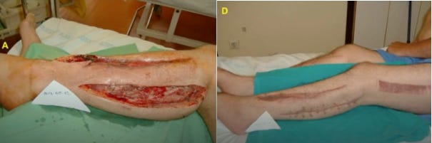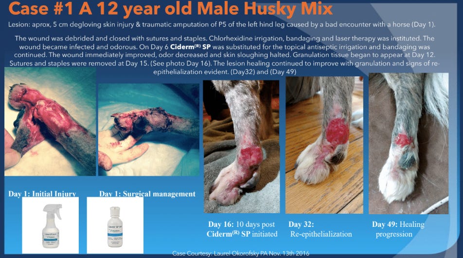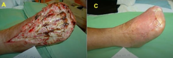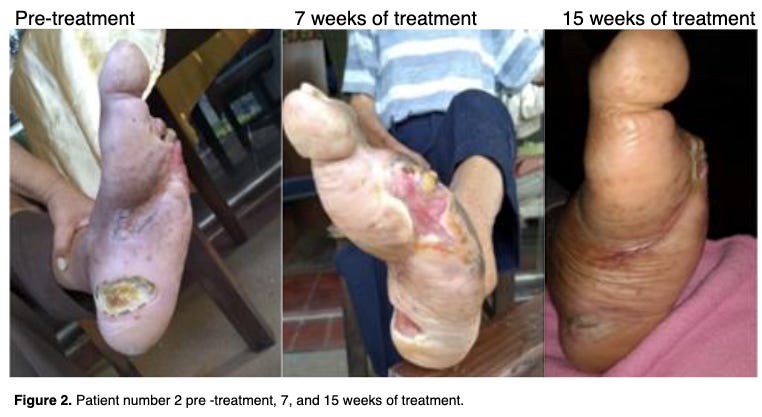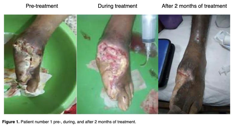 Topical chlorine dioxide (and one case of just oral ingestion) in the treatment of all sorts of non-healing wounds is both compelling, reasonable quality, reproducible and increasing.