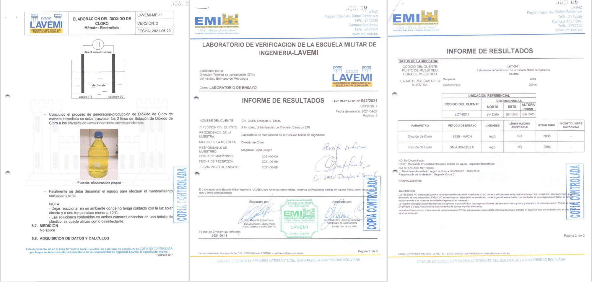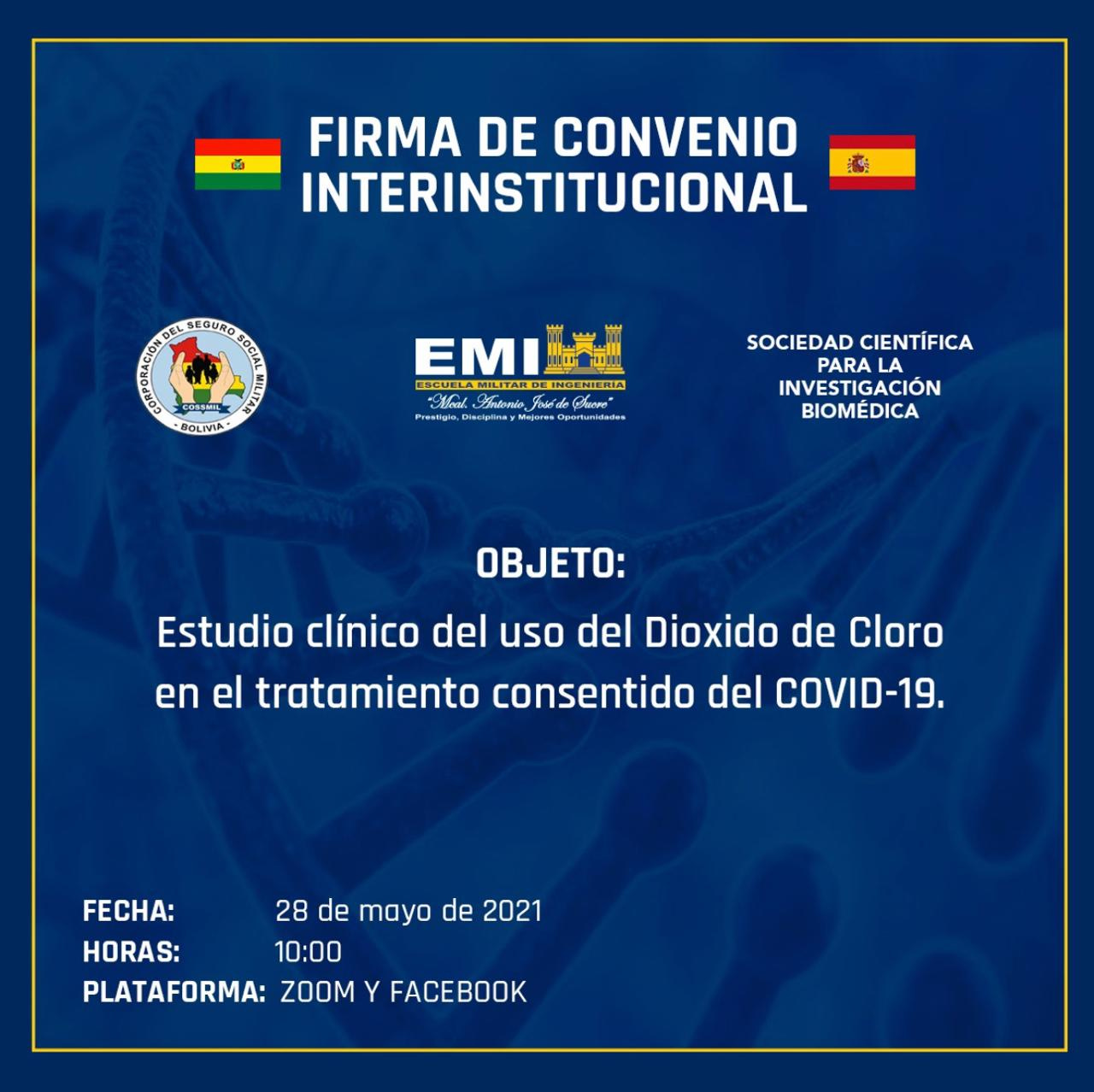 A year later, in 2021, Dr. Patricia Callisperis and her team (she was one of the main physicians involved with the military program) made an attempt to conduct a randomized, double-blind study. The trial was developed by a branch of Bolivia's army, Clínica del Sur and the Spanish scientific society SCIB. The chlorine dioxide solution was developed by the Escuela Militar de Ingeniería (EMI).