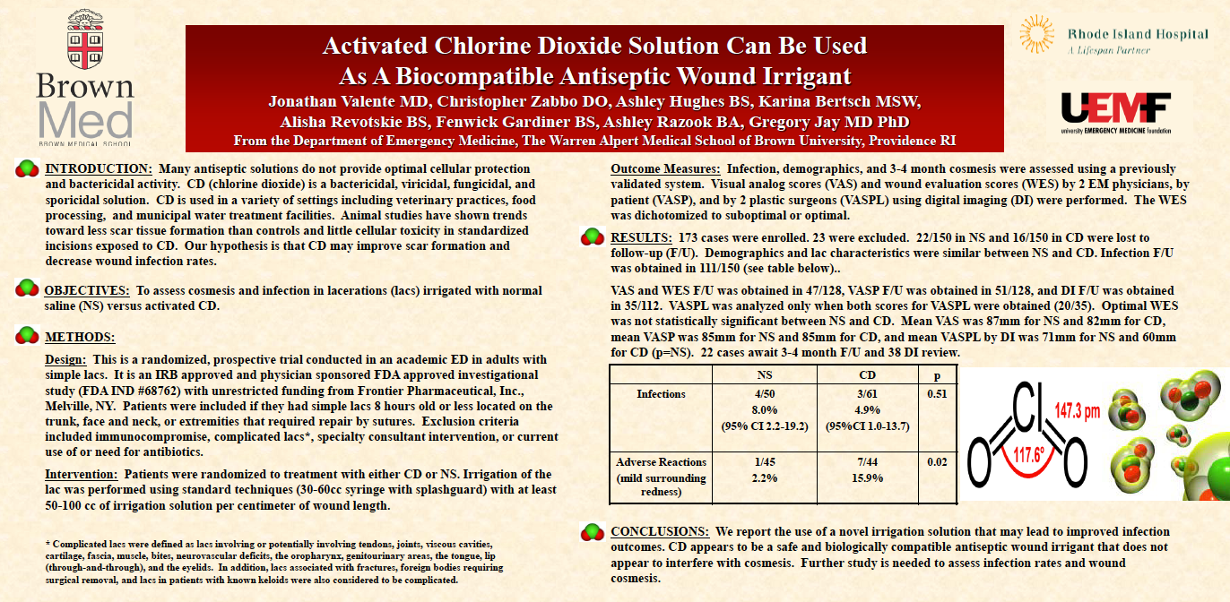 In the below pdf is a burn wound study called “Studies of Infection and Microbiological Surveillance of Troops With Thermal Injury - Topical Use of Sodium Chlorite-Lactic Acid Gel in Pseudomonas Burn Wound Sepsis.” The study was performed in 1980 at the US Army Institute of Surgical Research, using a precursor chlorine dioxide Gel formula made by Howard Alliger while at Alcide, Corp. From the study discussion – “Surprisingly, sodium chlorite-lactic acid gel gave excellent results with only one treatment (rather than 10) and with one days’ delay.”