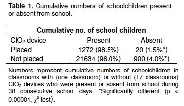 In Japan, they did a study where they released chlorine dioxide gas in the classroom of Japanese schoolchildren over a 38 day period, and they found it lowered absentee rates - i.e. there was significantly less illness in the classrooms exposed as can be seen in the table below: