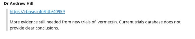Andrew Owen profited from his complicity with that system, while I think Andrew Hill simply submitted due to cowardice at the prospect of destroying his livelihood and future career prospects. Mess with BMGF and you are done in international Public Health. Done. So he did not have the courage or integrity to become a whistleblower. I still believe that Andy did not know he was doing opposition research at the beginning of his investigation into ivermectin. But, judging by the actions taken subsequent to the publication of his later, profoundly positive paper supporting the use of ivermectin, it is hard to argue he is not actively working for them now. They got him. They always do.
