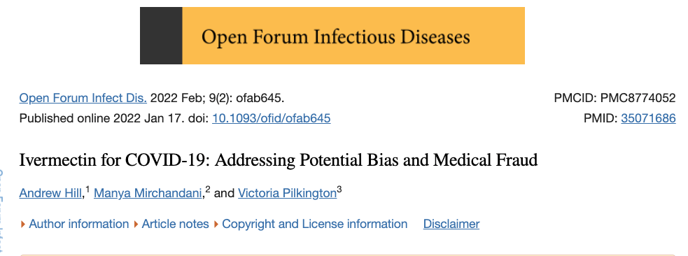 Note that Open Forum Infectious Diseases is considered a high quality journal. With that one report of a supposedly fraudulent trial, combined with new and increasing allegations on other trials by two barely published (except on social media) “researchers” (I am being generous here) who started working with Andy, they were able to smear the entire evidence base in the media by constructing a new narrative that “a significant amount of the ivermectin trials are suspected to be fraudulent.” Of course this narrative was always paired with the refrain of “larger, more rigorous studies are needed to validate the evidence base.”