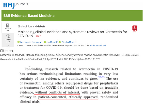 Why not? Because he long ago staked a claim that ivermectin doesn’t work, again based on less than a handful of supposedly “rigorous” trials published in high-impact medical journals. He ignored all the “proper” meta-analyses (recall that massively fraudulent meta-analyses were published in high-impact journals too). Pharma really really knows what they are doing, and they have been doing it a loooong time.