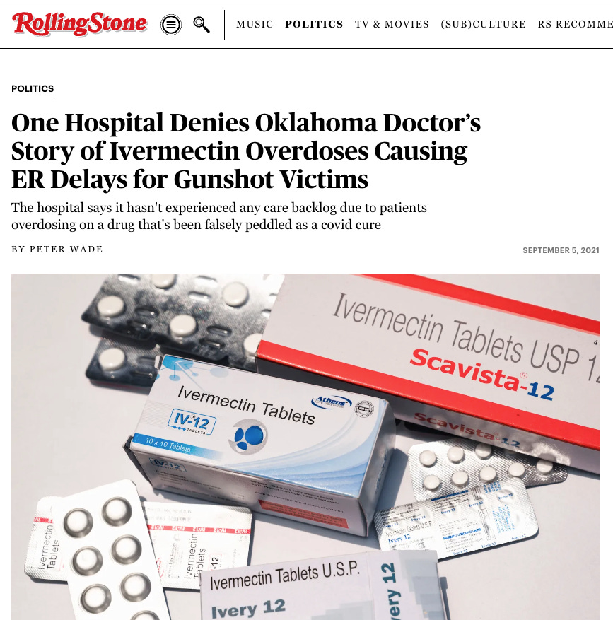 Anyway, the next day the hospital where this supposedly occurred put a statement on their website that the doctor quoted in the article had not worked there for many months and that they had not had a single ivermectin overdose. Remember the line "a lie can travel halfway across the world before the truth can get its pants on?"