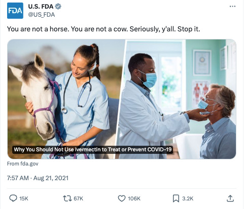 I maintain that the campaign was started on Aug 21, 2021 by a snarky FDA tweet aimed at all Americans (I didn’t know public health agencies were supposed to be snarky but whatever):