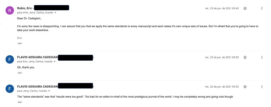 So, Flavio’s study manuscript was first submitted to the two highest-impact medical journals in the world which was rejected arbitrarily by editors despite the peer-reviewers lack of such a recommendation. The journey of this paper to publication is not over. It simply gets increasingly disturbing. Click here for Part 2.