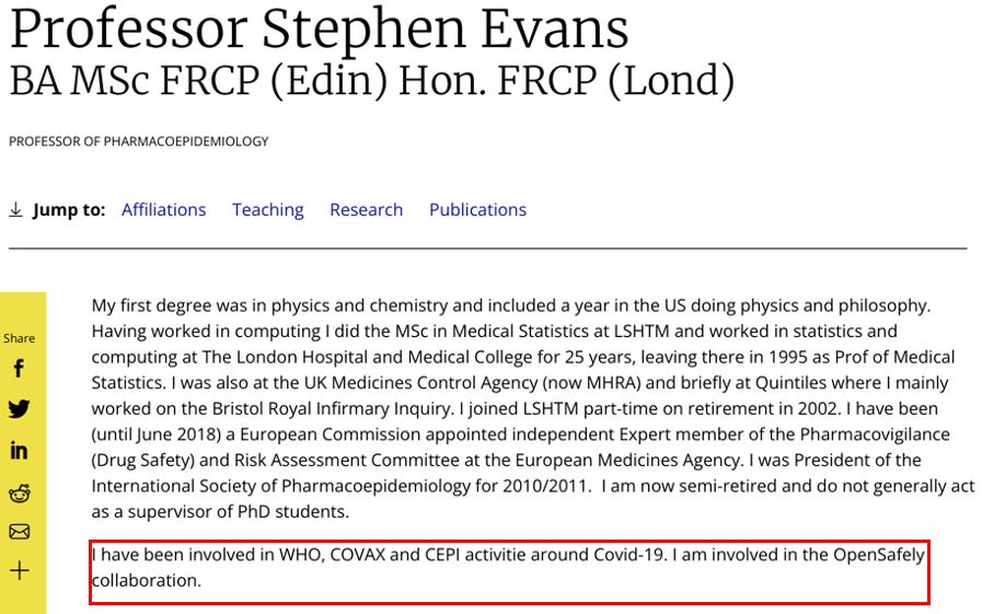 The seventh peer reviewer was supposed to do a “statistical analysis” of the paper, whatever that means as it had already been reviewed by six peer reviewers and the BMJ Statistics editor. This peer reviewer preposterously declared “no conflicts of interest.” Wait for it. Wait for it. Here is his bio: