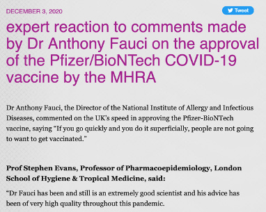 Here is Evans being trotted out to the press to deflect the early concerns over the safety of the mRNA injections: