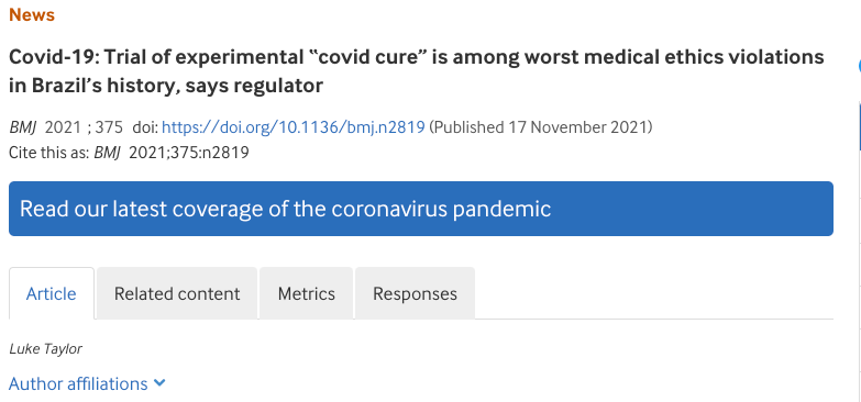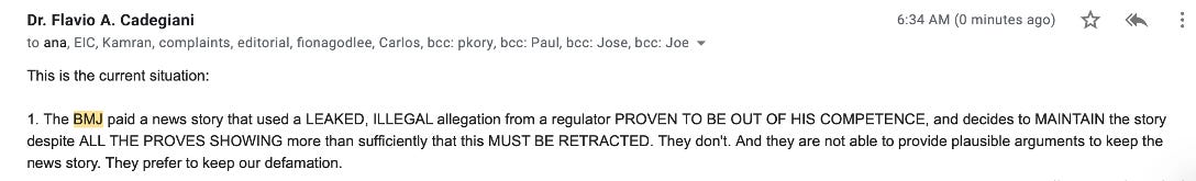 All of a sudden, out of nowhere, BMJ published a commissioned “hit job” of an article on Flavio and his team, literally continuing this newly established narrative that he was an unethical (murderous?) medical researcher. It is an absolutely disgusting read given that every single claim made by the author is easily and provably false: