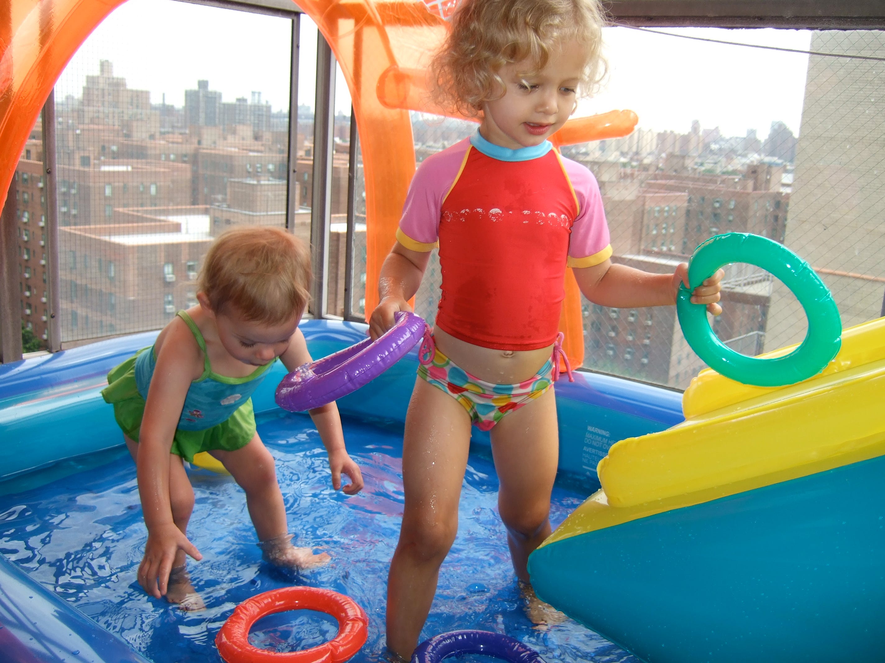 I won’t forget the first ham-hocked inflatable pool I installed on our 17th-floor balcony in NYC, where we lived during my Pulmonary and Critical Care Fellowship training and my children were toddlers. The balcony was made of a massive slab of concrete, by the way. Note, it came with a water slide: