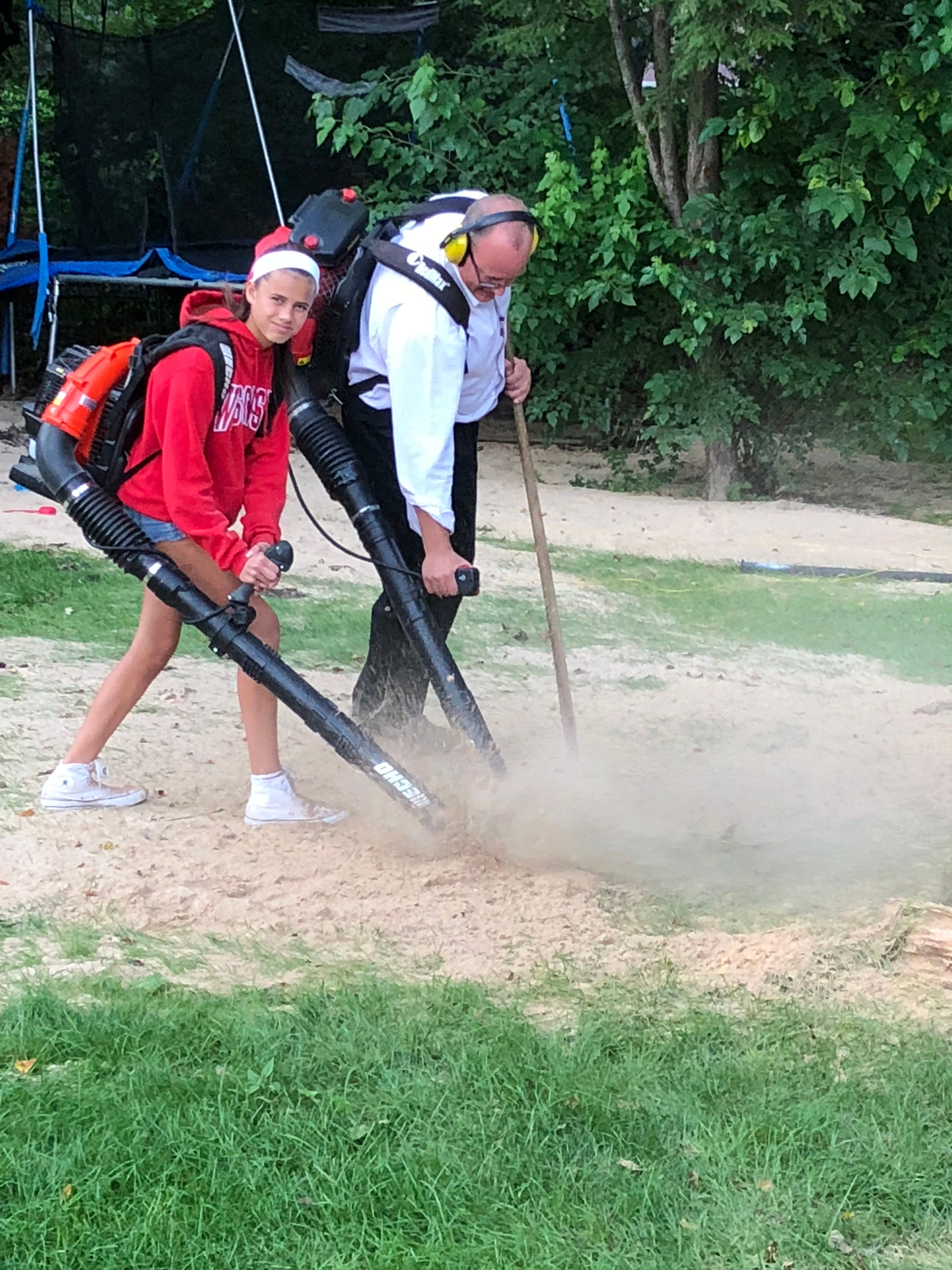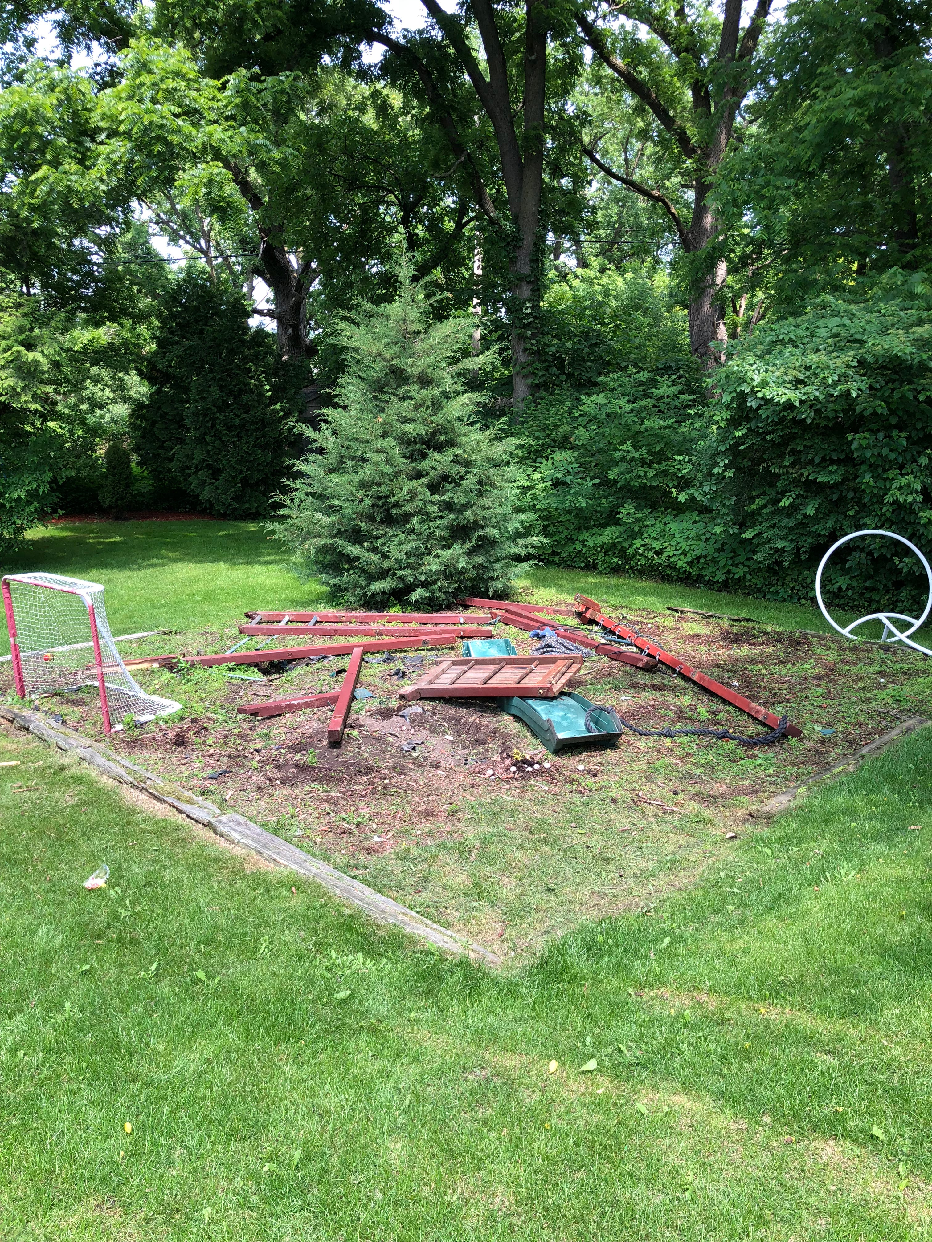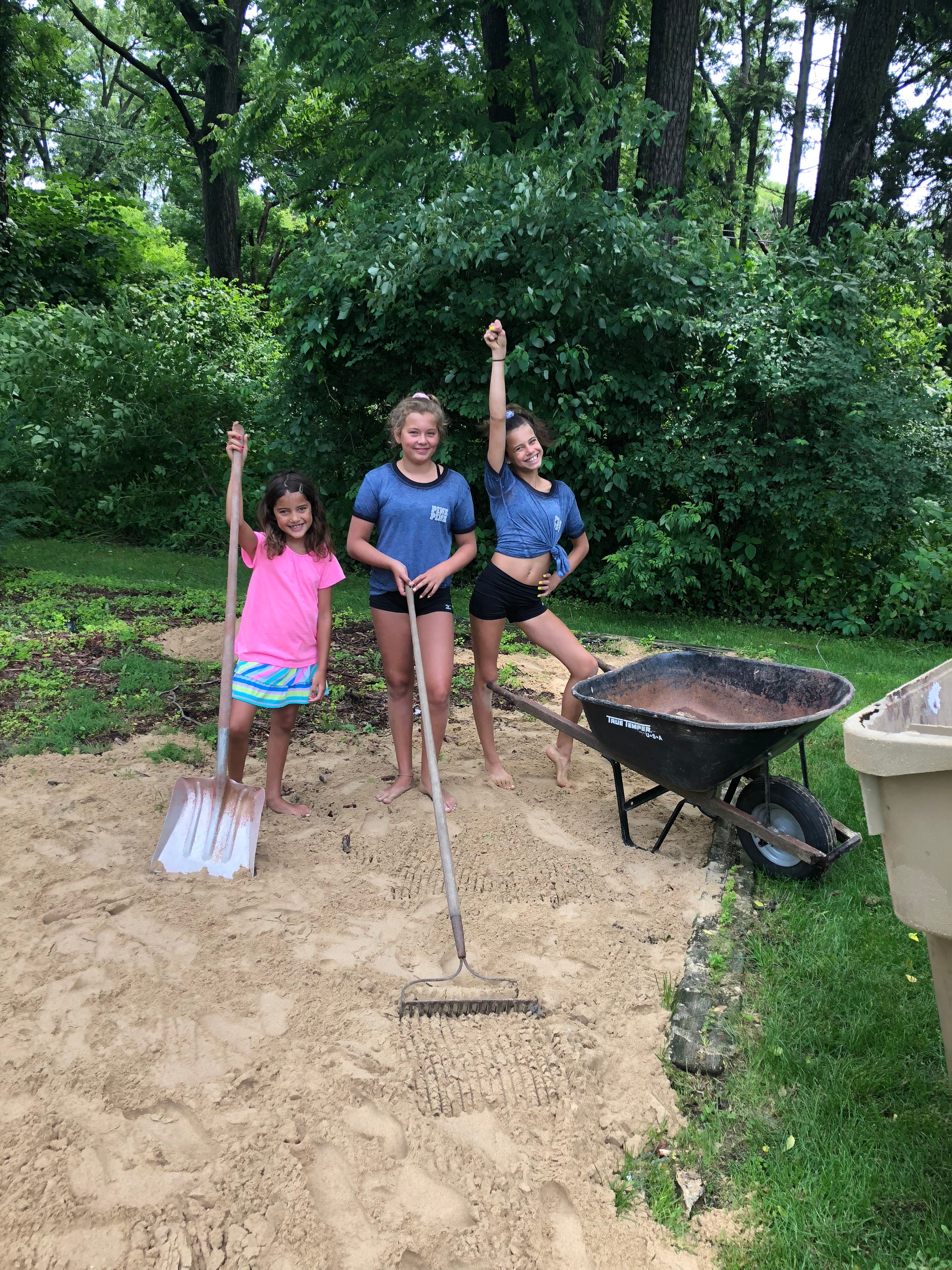My daughter was starting to get into volleyball, so I came up with the brilliant idea of taking down their childhood play set and carting a ton of sand from the driveway into the backyard (I paid my daughter and her friend to do it, and they almost quit on me a few times):