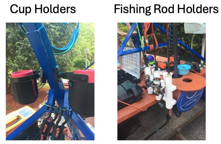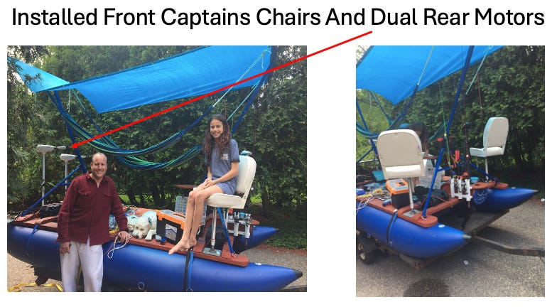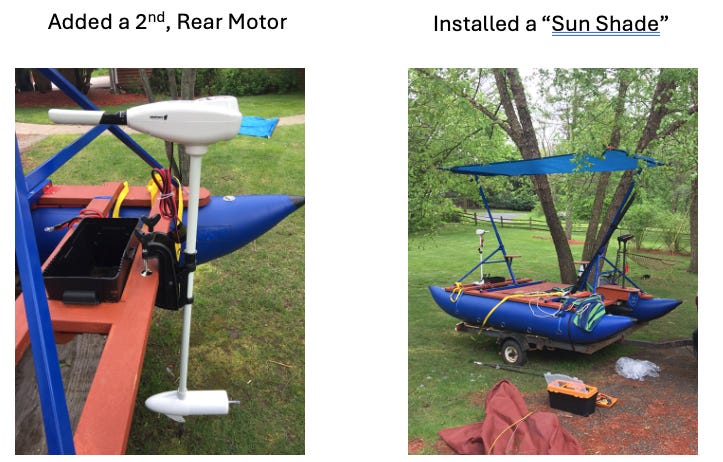 My kids and I loved the boat (for a while, until the motors kept breaking down and stranding us on the lake). During those first months, I continued to make improvements. In no particular order: