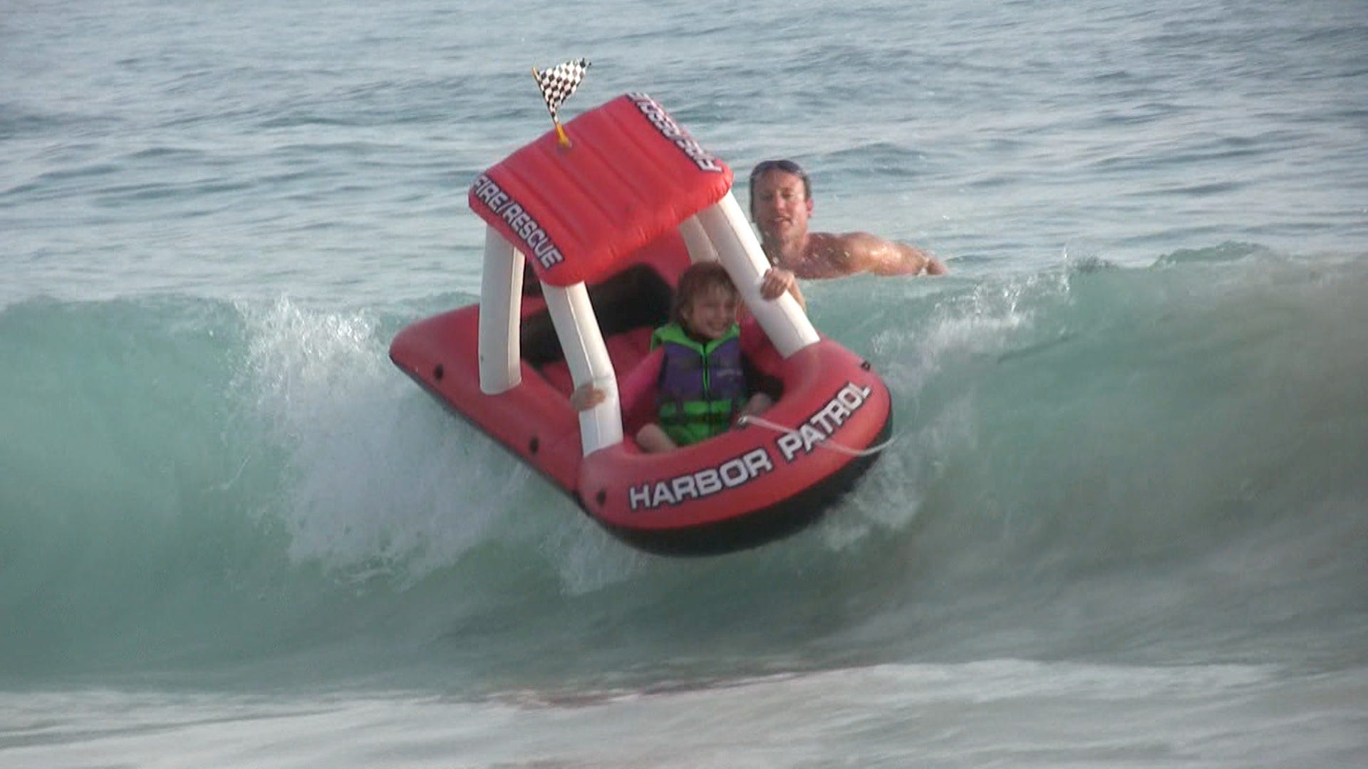 The below inflatable boat was purchased repeatedly for numerous beach vacations after we found that it would literally surf waves with my girls in it - best purchase ever - essentially I “hamhocked” an inflatable boat into a surfboard: