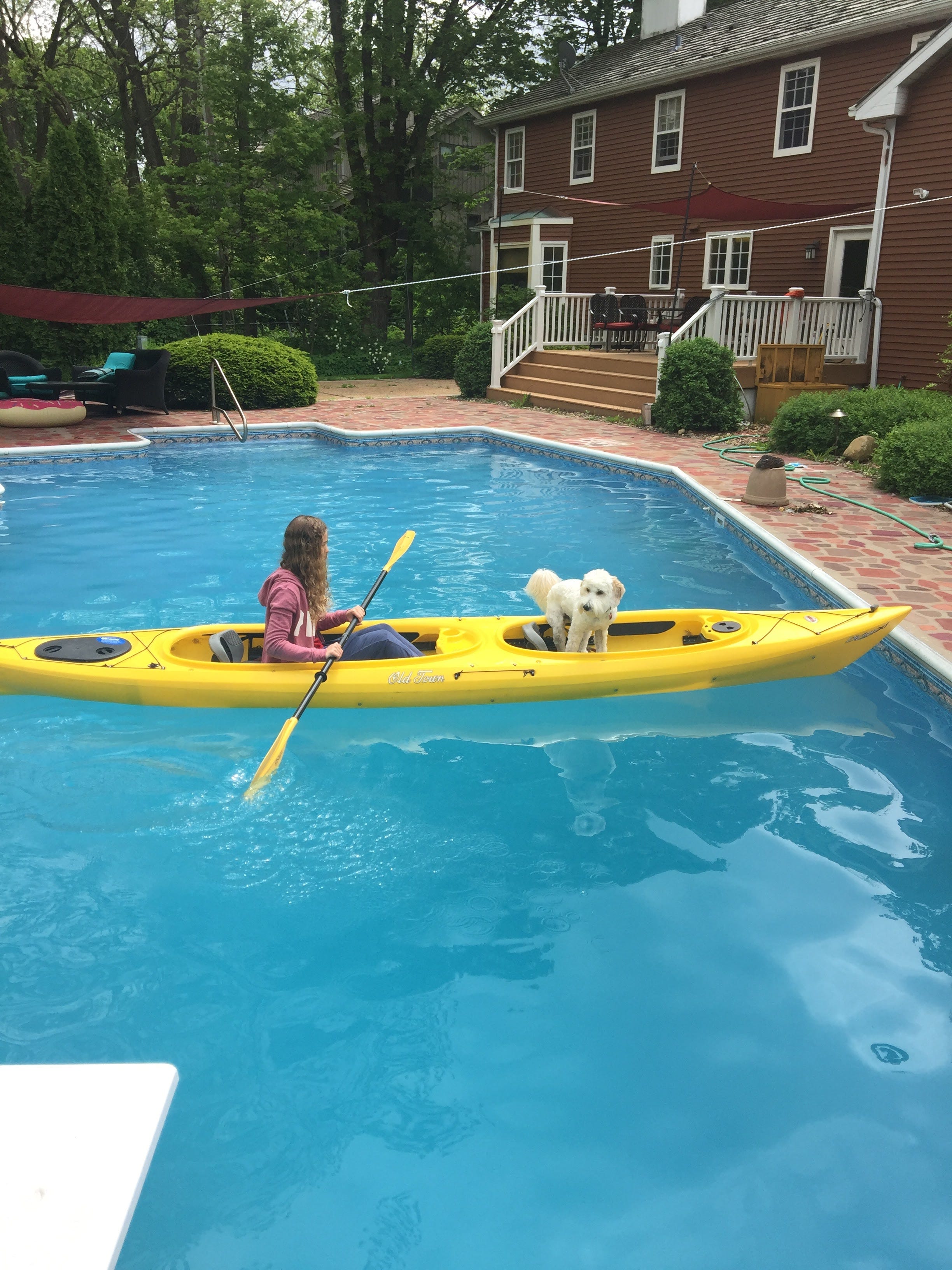 I bought a two-person kayak after we moved to Madison, WI (land of lakes). Tested it out in the pool first: