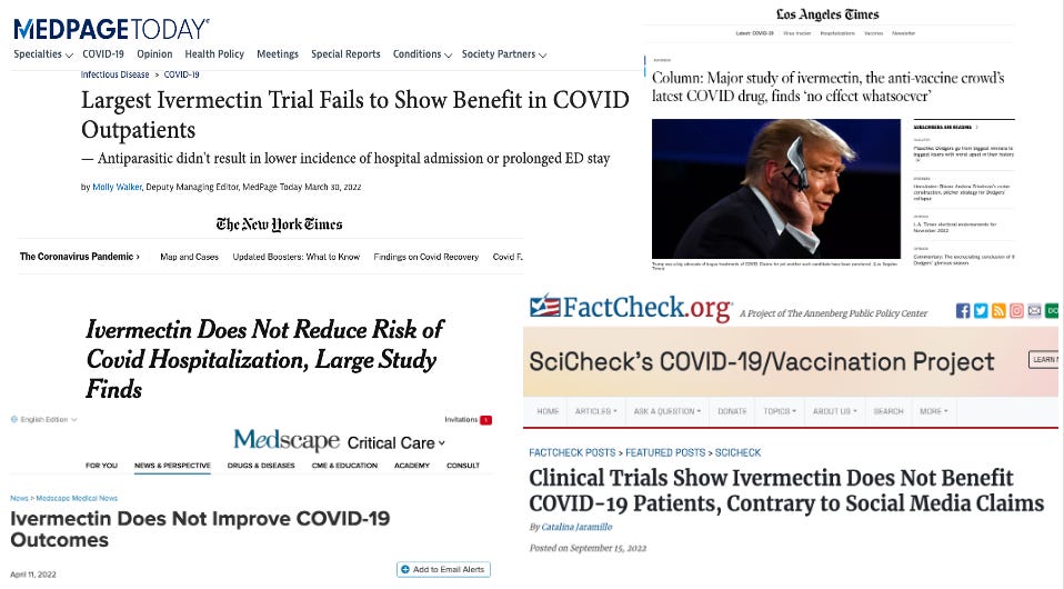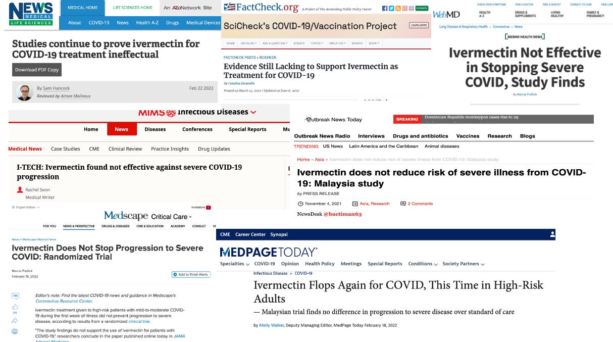 Anyway, the point of this post is to compile the fraudulent studies and meta-analyses of ivermectin that launched all the headlines supporting the Disinformation campaigns. These five are emblazoned in my memory: