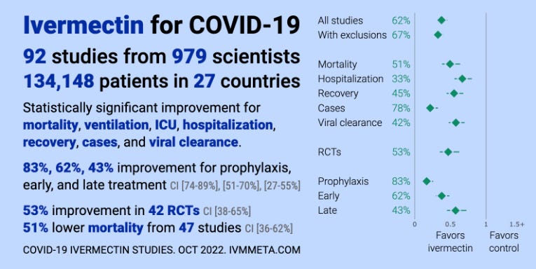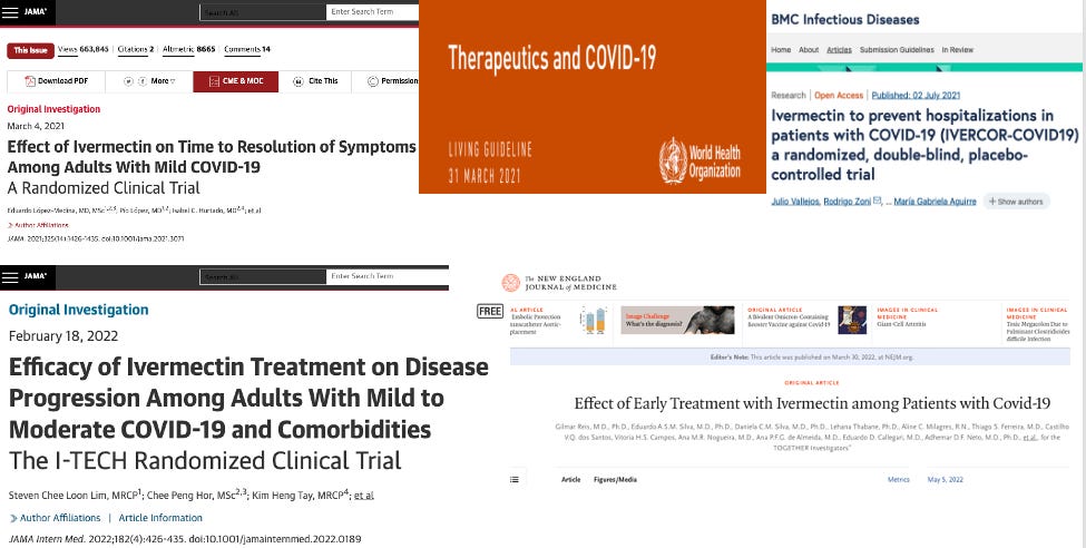 The propaganda was disseminated to the average citizen through major (corporate/legacy) media, and to the physicians and health systems through the high-impact medical journals. Let’s not forget that physicians also consume lots of media so they were double whammy’ed and thus became some of the most ferocious attackers of “ivermectin advocates.” Poor things. Me and the FLCCC were initially hurt by these attacks, but that feeling quickly turned to a deep sadness as we watched medical professionals the world over act out against ivermectin after being fed outrageous “scientific” lies. I must say that the despair I felt over their behavior paled in comparison to how I felt over their vaccine behavior, none more so than when doctors across the world literally mandated and/or strongly recommended vaccinating people who had just recovered from the disease they were vaccinating against. Using the most lethal and toxic medical intervention in modern history. Let’s not go there right now.
