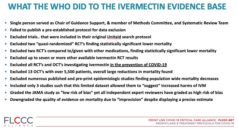 I spent weeks writing a white paper on this atrocity. Again, had the WHO instead issued a “conditional” recommendation, which the evidence at that time fully supported, the entire trajectory of the pandemic would have been altered. Public health my ass.